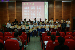 学校领导为廖梦歆等18名优秀学生、卢聪等11名优秀学生干部及优秀毕业生佘宜寰、杜宇佳、马天一等同学颁发了奖金和获奖证书。