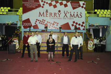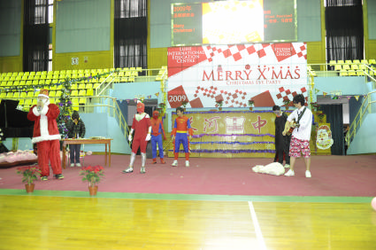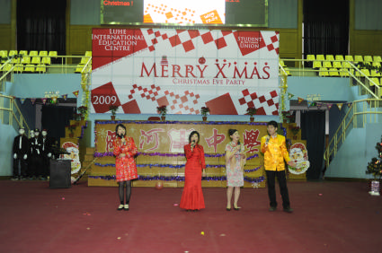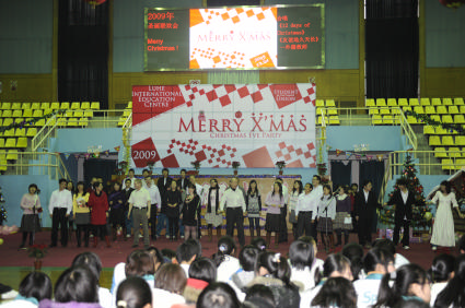 “Merry Christmas, Merry Christmas”在欢快的问候声中,潞河国际教育学园的师生们在潞友体育馆迎来了2009年圣诞节联欢会。节目新颖,色彩纷呈,本次圣诞Party与往不同的是从整体LOGO设计到舞台布景再到节目演出安排,学园学生会的同学们都亲自参与进来,这不仅让同学们的创意和想象力得到了发挥,也对他们组织策划能力的提高大有裨益。
