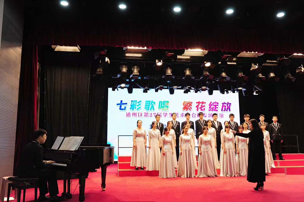 北京潞河国际教育学园合唱团是在校学生工作部领导下成立的社团之一,成立于2012年,维持约30人的规模,包括钢琴伴奏一名,本社团是SATB四声部混声合唱团。合唱不仅能够提升学生的音乐素质,锻炼学生的演唱技巧,还可以让学生学会团结,体会合作的力量,通过各个声部不同旋律,强弱的对比,共同演绎打动人心的作品。